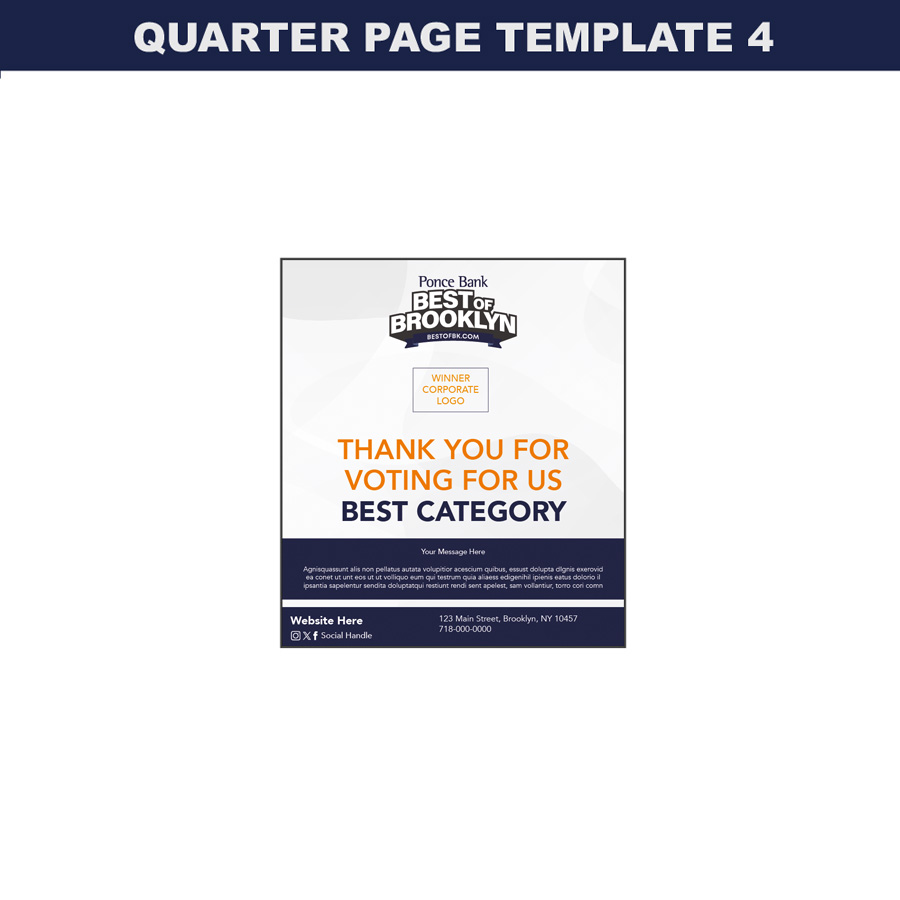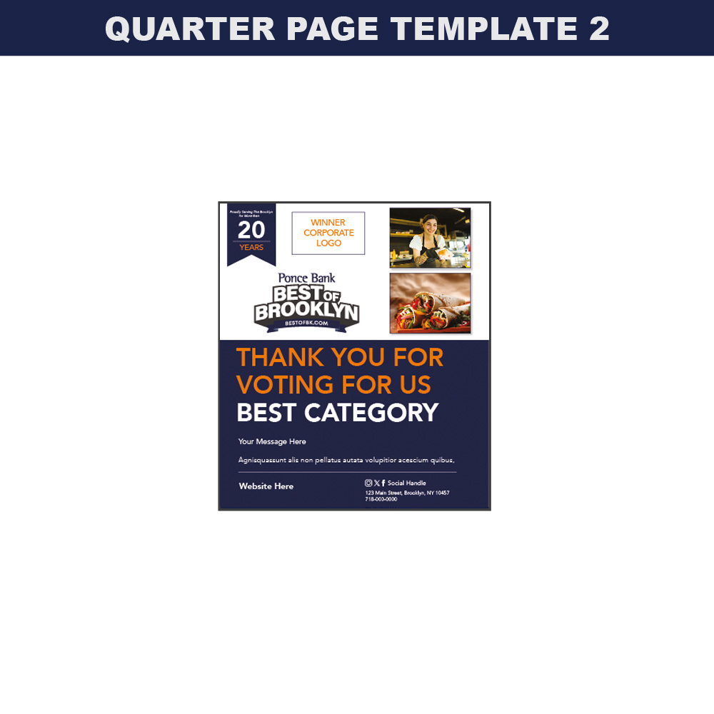 Quarter Page Ad in the Official 2026 Best of Brooklyn Winner’s Guide